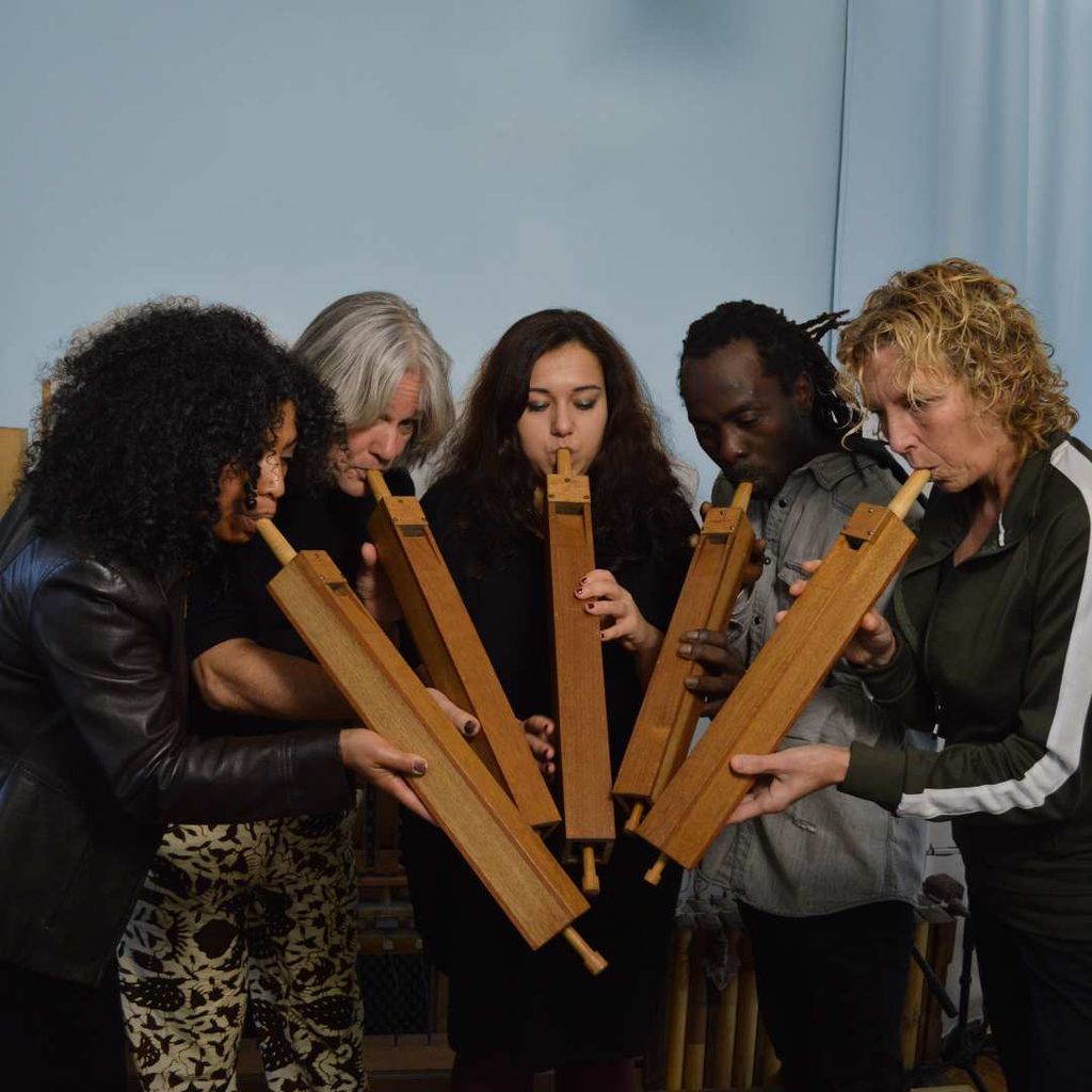 Monica Akihary stem/baskalimba/elektronica, Niels Brouwer gitaren/gongs/elektronica, Sekou Dioubate 35-snarige kora/slitdrum, Dodó Kis sopraan-/alt-/tenorblokfluit/paetzold-basblokfluit, Nora Mulder kistorgel