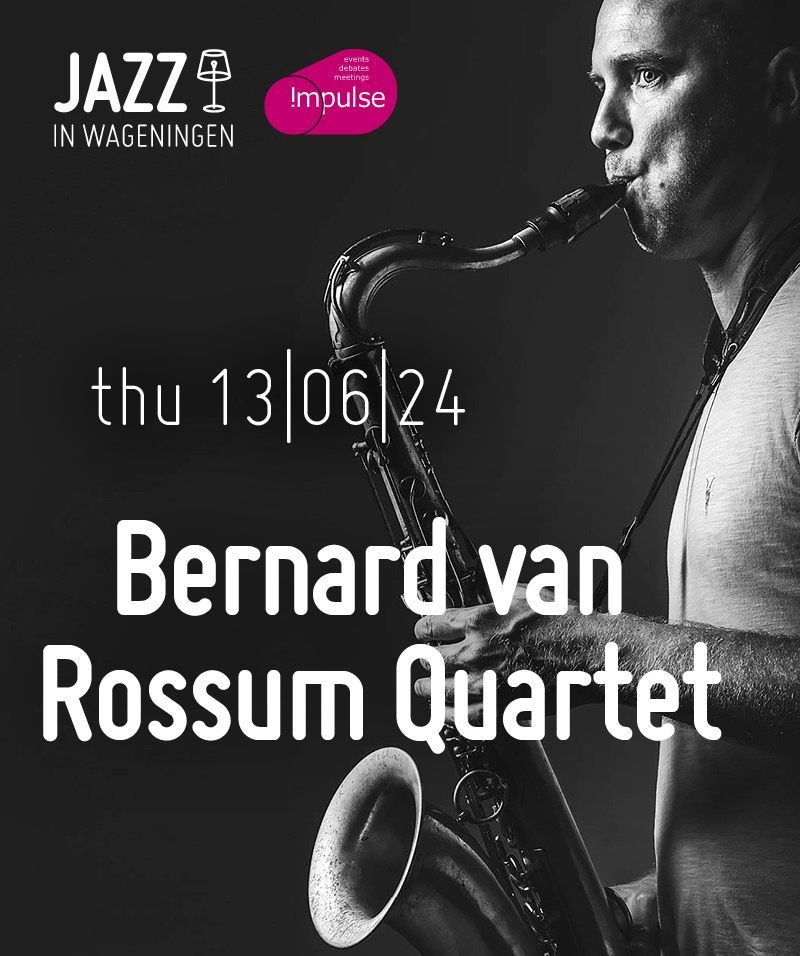 Bernard van Rossum is een Spaans-Nederlandse saxofonist/ componist/ arrangeur, die je misschien nog kent uit het Sam Newbould Quintet. Na een studie in Barcelona en de VS haalde hij zijn Master bij het Conservatorium in Amsterdam. Na 3 veelgeprezen albums met zijn BvR Flamenco Bigband presenteert hij hier het eerste album met zijn kwartet. Met eigen composities en met de beste muzikanten uit het jazz-circuit waaronder Xavi Torres die je overigens ook al eens in Wageningen hebt kunnen bewonderen.\nBernard won ondermeer de Meerjazz International Big Band Competition (2014), de Keep an Eye on Jazz Award (2015) en de "Rogier van Otterloo award" afgelopen jaar met het Metropole Orkest.\n \nKenny Werner (die je op 27 Mei op het podium van JIW kunt zien!!) zegt: "I heard some new territory that night. Modern, innovative, and highly skilful composition". En All About Jazz schrijft: “His engaging compositions and arrangements are awash in perception and authenticity”. Lees er meer over op www.bernardvanrossum.com. Dit lijkt me reden genoeg om nu meteen je beste vrienden te bellen en direct kaarten te bestellen...\n \nis een stichting zonder winstoogmerk waarmee we jazzconcerten organiseren. Voor muziekliefhebbers, door muziekliefhebbers.