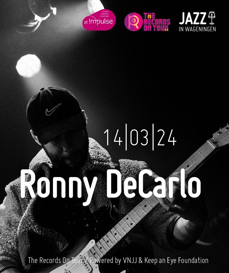 In samenwerking met The Records On Tour organiseert Jazz in Wageningen een concert van winnaar Ronny DeCarlo. Ronny deCarlo is het project van de Colombiaans/Nederlandse gitarist Roenik Roa Espinosa. Zijn eigenzinnige instrumentale composities zijn een weelderig lappendeken van fusion, gospel en latin, met invloeden uit film- en game muziek en een hoofdrol voor gitaar. In Ronny's klankwereld worden genre grenzen doorbroken en klinken filmische melodieën naast strakke arrangementen en pakkende grooves. De muziek streeft naar een balans tussen rauwe liveband energie en een eigentijdse en elektronische sound.Roenik Roa Espinosa (gitaar)Matthijs Geerts (keys & synths)Misha Voeykov (elec. bas)Noah Bouwman (drums & SPD)\n \nHet juryrapport zegt: “Deze band voelde als een échte band. De presentatie was fantastisch en de bandsound fris. We hebben genoten van het speelplezier dat van het podium afspatte.” Wij zien er naar uit om deze jonge honden op ons podium te zien spelen en we hopen dat je er bij bent.\n \n \nis een stichting zonder winstoogmerk waarmee we jazzconcerten organiseren. Voor muziekliefhebbers, door muziekliefhebbers.