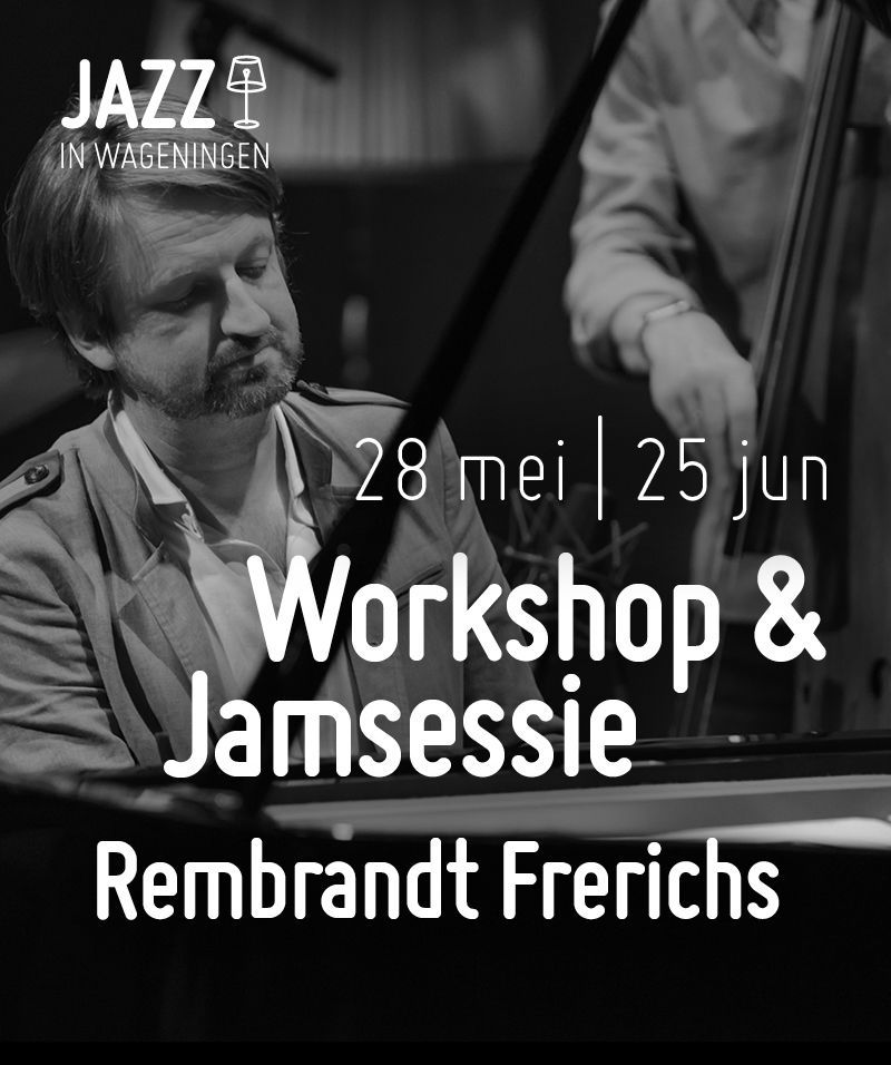Op de laatste dinsdag van de maand organiseren we workshops & jamsessies in het theatercafé van Junushoff. Voor een levendig jazzklimaat in onze stad hebben we niet alleen concerten van de allerbeste jazzmusici nodig, maar moet er ook gelegenheid zijn om te experimenteren en te leren. Wie op de hoogte wil blijven stuurt zijn gegevens naar jamsessie@jazzinwageningen.nl.\n \nOp 28 mei & 25 juni verzorgt pianist Rembrandt Frerichs voor maximaal 15 muzikanten een workshop. Wie meer over hem wil weten kijkt op www.rembrandtfrerichs.nl. Het blijft een verrassing waar aan gewerkt gaat worden, maar het is alleen al leuk om inzichten van deze geweldige muzikant op te doen. Meedoen aan deze workshop kost €20,- voor 2 avonden. Bij opgave willen we graag weten wat voor instrument je speelt, wat je eventueel aan backline nodig hebt en hoeveel ervaring je hebt. Je krijgt vooraf bericht als je wat kunt voorbereiden. Leuk als je meedoet!\n \nis een stichting zonder winstoogmerk waarmee we jazzconcerten organiseren. Voor muziekliefhebbers, door muziekliefhebbers.