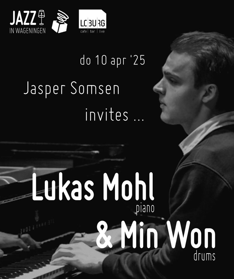 De succesvolle concertserie van de Wageningse contrabassist/componist/producer zit al weer in het elfde jaar en is niet meer weg te denken in het rijke kunst- & cultuurprogramma dat Wageningen biedt. Op donderdag 10 april 2025 zijn de Duitse pianist/componist Lukas Mohl en de Zuid-Koreaanse drummer Min Won te gast. Internationaal aanstormend talent komt deze keer dus naar Loburg. Het wordt een bijzondere avond met twee musici uit de Generation Z.