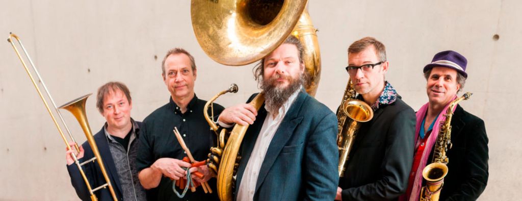 Janfie van Strien saxofoon & klarinet, Joop van der Linden trombone, Arno Bakker sousafoon Matt Darriau saxofoon & klarinet, Michael Vatcher slagwerk